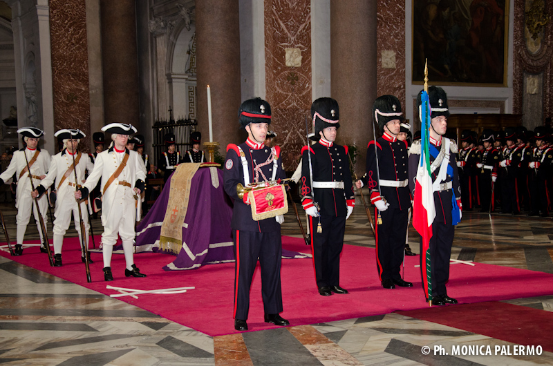 Nella Basilica, gremita di gente, erano presenti circa 200 militari del Distaccamento del 1 Reggimento in Armi in uniforme storica. Tra i militari passava costantemente personale medico per prevenire eventuali malori dovuti al colbacco e alla lunga posizione eretta.