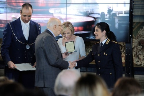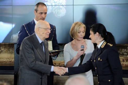 Roma, 8 marzo 2014 – Il Primo Dirigente della Polizia di Stato dr.ssa Francesca Monaldi ricevuta oggi al Quirinale e insignita dell’onorificenza di Ufficiale al merito della Repubblica italiana dal Presidente Giorgio Napolitano.