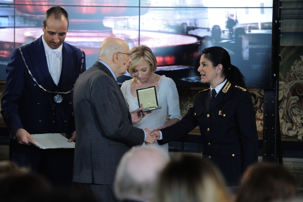 Roma, 8 marzo 2014 – Il Primo Dirigente della Polizia di Stato dr.ssa Francesca Monaldi ricevuta oggi al Quirinale e insignita dell’onorificenza di Ufficiale al merito della Repubblica italiana dal Presidente Giorgio Napolitano.