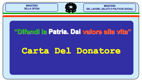 Difesa e sanità insieme nel progetto Difendi la Patria. Dai valore alla vita, una iniziativa che si rivolge agli appartenenti alle Forze Armate, promossa dal Ministero della Difesa e dal Ministero del lavoro, della salute e delle politiche sociali. Difendere e saper difendere è la prerogativa dei nostri militari. Difendendo il Paese e i diritti umani della collettività internazionale, forniscono un significativo contributo alla vita altrui e, in particolare, a quanti soffrono e hanno bisogno del loro aiuto. È grazie alla generosa dedizione con cui le Forze Armate italiane si prodigano, ovunque sia richiesto il loro intervento, che il progetto va avanti.