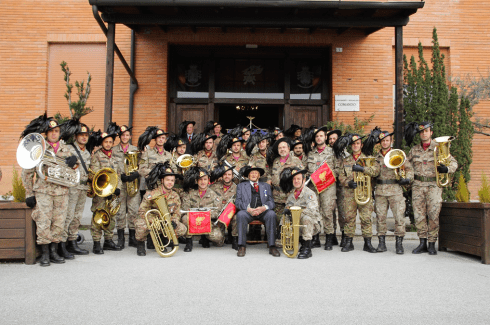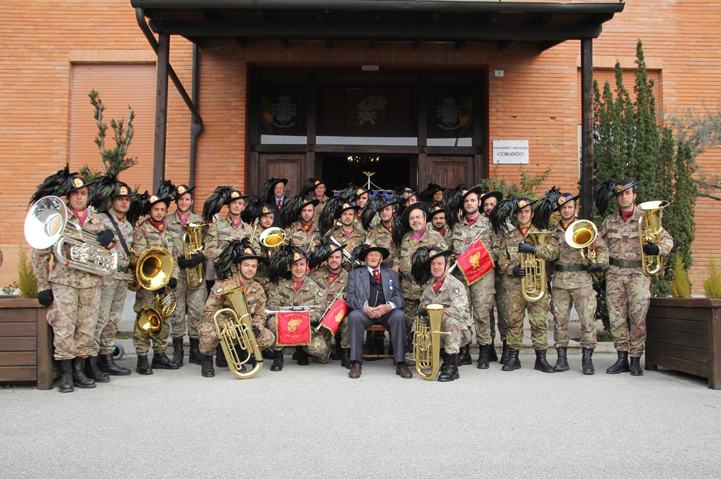 Orcenico, 20 marzo 2014 – Il bersagliere Davide Santin, classe 1914, decorato di Medaglia d’Argento al Valor Militare, nel giorno del suo centesimo compleanno, ha fatto ritorno alla caserma Leccis di Orcenico tra i Fanti piumati del “suo” 11° Reggimento nei cui ranghi ebbe l’onore di militare.