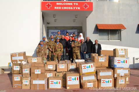 Shama (Libano), 20 marzo 2014 – I caschi blu di ITALBATT, su base 1° Reggimento Granatieri di Sardegna, hanno consegnato alla sede della Croce Rossa Libanese in Tiro un carico di aiuti umanitari consistenti in vestiti, giocattoli e materiale didattico, raccolti nei mesi precedenti in Italia. I doni saranno poi distribuiti dai volontari della Croce Rossa alle famiglie più bisognose dei villaggi del Libano del Sud.