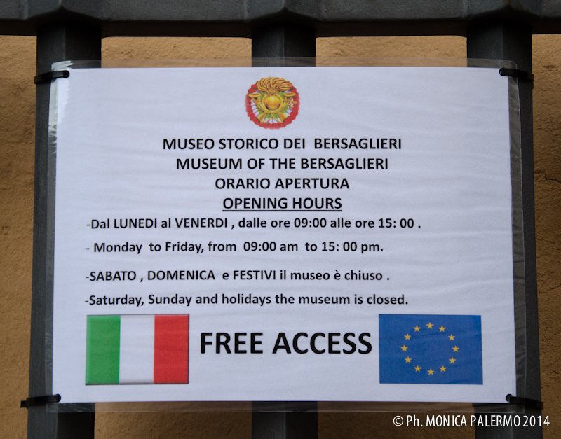 Roma, 28 marzo 2014 – Da oggi anche il Museo storico dei bersaglieri di Porta Pia ha il tricolore. Una cerimonia solenne oggi per l’alzabandiera alla presenza dei bersaglieri della sezione di Roma Capitale e di Pomezia, con il presidente Massimo Flumeri e il capo fanfara Renzo Tomò. L’evento è iniziato con un discorso del colonnello bersagliere Nunzio Paolucci, direttore del museo. Don Emanuele Daniel, Parroco di S. Giuseppe sulla Nomentana, ha benedetto i presenti e le bandiere, che sono state posizionate poco dopo, da alcuni militari, sul pennone della vela di Michelangelo. Nell’attesa è stata letta la Preghiera del Bersagliere, dalla funzionaria Anna Di Carlo e dal Bersagliere Antonio Abbadessa. I fanti piumati hanno poi cantato l’inno di Mameli accompagnati dalla tromba del bersagliere Massimiliano Giustiniani.