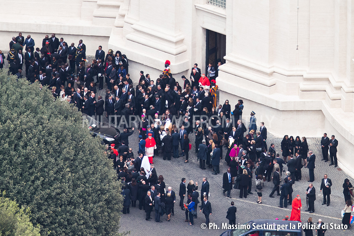 Citta’ del Vaticano, 27 Aprile 2014, la Canonizzazione di Papa Giovanni Paolo II e di Papa Giovanni XXIII, fotografata da un elicottero della Polizia di Stato. (vengono ceduti i diritti di riproduzione esclusivamente a scopo giornalistico purche’ sia citata la fonte “foto di Massimo Sestini per la Polizia di Stato”. E’ vietata qualsiasi altra forma di utilizzo). Vatican City – April 27, 2014, the canonizations of Pope John XXIII and Pope John Paul II: exclusive picture taken from a helicopter of the Italian National Police. (Free reproduction rights for press use only, provided that the source is mentioned in the caption “photo Massimo Sestini/Italian National Police”. No other use is allowed)