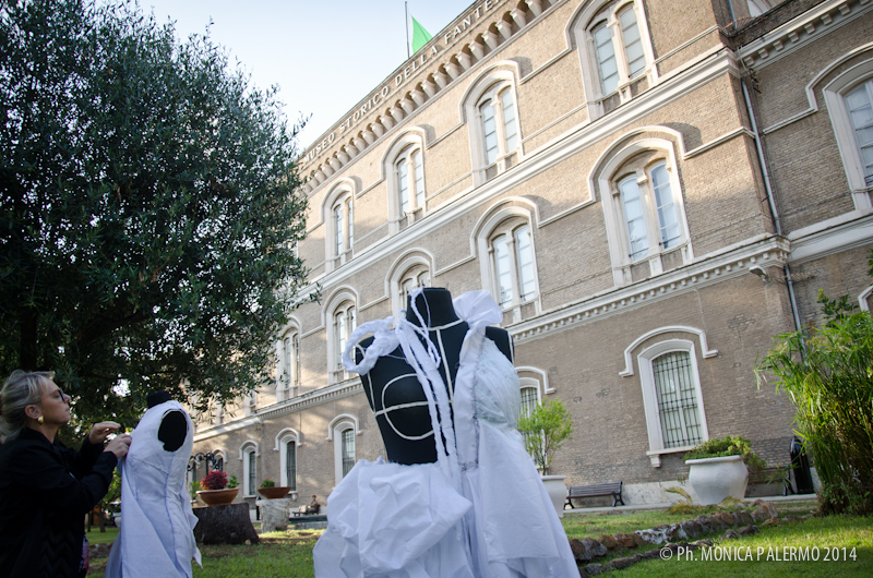 Numerose le performances che si sono tenute nel giardino del museo, manichini dislocati ovunque dove il numeroso pubblico ha potuto ammirare, in diretta, l’esecuzione di creazioni “fatte a mano”, dagli abiti dello stilista Danilo Attardi, al corso di tessitura e ricamo, della Scuola di Ricamo Alta Moda, mentre l’artista Roberto Di Costanzo disegnava a china lo scenario del tempio.