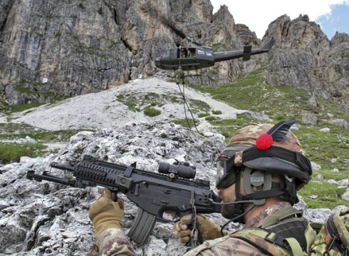 Belluno, 18 luglio 2014 – Nel bellunese, sul complesso montuoso delle Torri del Falzarego, si è svolta nei giorni scorsi l’esercitazione alpinistica Falzarego 2014, a cui hanno preso parte 400 militari della brigate Taurinense e Julia, del Centro Addestramento Alpino, i ranger del 4° Reggimento Alpini Paracadutisti e equipaggi di elicotteri d’attacco A-129 Mangusta, di AB-205 e AB 412 dell’aviazione dell’esercito, che hanno verificato l’addestramento e le capacità di operare in perfetta sinergia in un ambiente difficile quale quello dell’alta montagna.