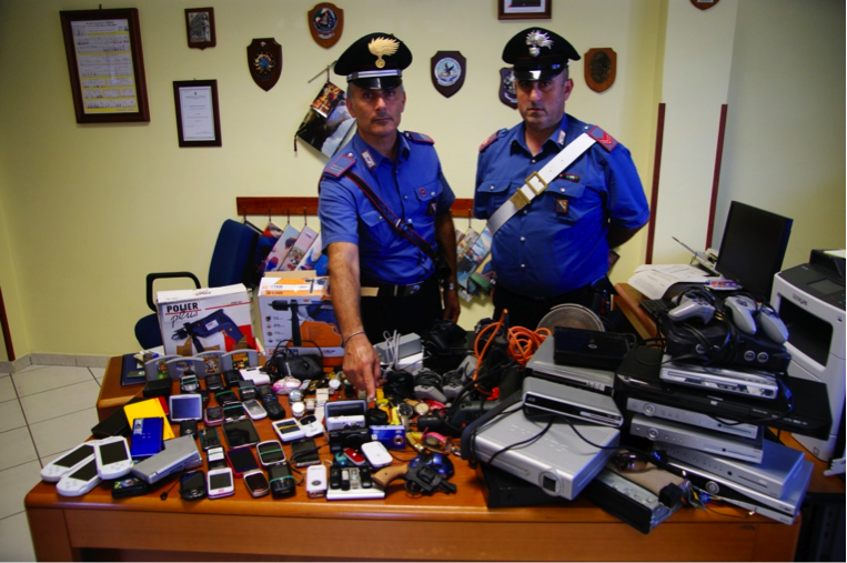 L’uomo è stato fermato dai carabinieri mentre circolava per la strada in sella ad una bicicletta e con in spalla uno zainetto contenente arnesi da scasso. I militari dell’Arma, durante la perquisizione a casa del sospettato, sono riusciti a recuperare 2 cellulari, (marca Nokia ed LG ), 2 videogiochi ed 1 orologio “Sector”, rubati poco prima nell’abitazione di un 40/enne del posto. Sono poi stati trovati altri 30 cellulari, 15 orologi, e diversi elettrodomestici. Durante la perquisizione l’uomo ha spintonato uno dei militari nel tentativo di darsi alla fuga, ma è stato prontamente bloccato. L’arrestato è stato quindi portato presso la casa Circondariale di S. Maria Capua Vetere (CE).