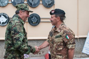 Pristina, 7 agosto 2014 – Il Comandante di KFOR, generale di divisione Salvatore Farina, ha ricevuto nei giorni scorsi la visita del capo di stato maggiore della difesa della Serbia generale Ljubisa Dikovic nella base militare di Camp Film City sede del comando KFOR a Pristina in Kosovo.