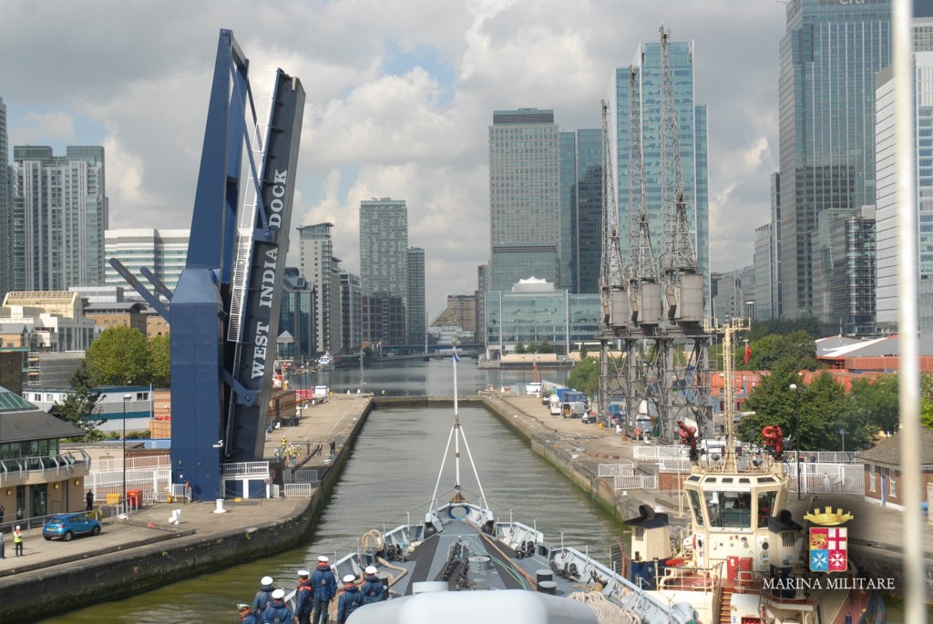 L’arrivo nella capitale del Regno Unito è stato caratterizzato dalla entusiasmante e suggestiva risalita del Tamigi, che ha portato il cacciatorpediniere sino al West India Docks, bacino realizzato nei primi anni del 1800, in un periodo di massima espressione per il commercio dell’Impero britannico. Le acque del fiume londinese sono state il teatro d’esercitazione, studio e impegno, per i giovani cadetti alle prese con la navigazione di precisione.