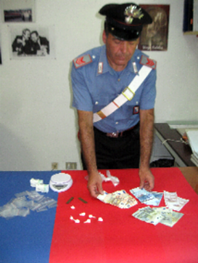 La successiva perquisizione domiciliare ha consentito, ai militari dell’Arma, di trovare nascoste, all’interno della borsa della donna, 9 confezioni sempre di cocaina, per un peso complessivo di 9 grammi circa e 2 pezzi di hashish, del peso complessivo di 5 grammi, nonché materiale che serviva per tagliare e confezionare la sostanza stupefacente e 250,00 euro, verosimile provento dell’attività di spaccio.