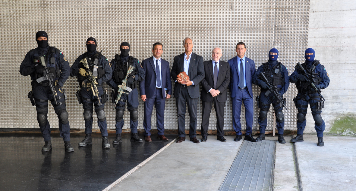 Ad attendere il presidente del CONI oltre il comandante del NOCS Andrea Mainardi, il direttore della scuola tecnica della Polizia di Stato dott. Domenico Scali ed il dott. Flavio D’Ambrosi delle Fiamme Oro.