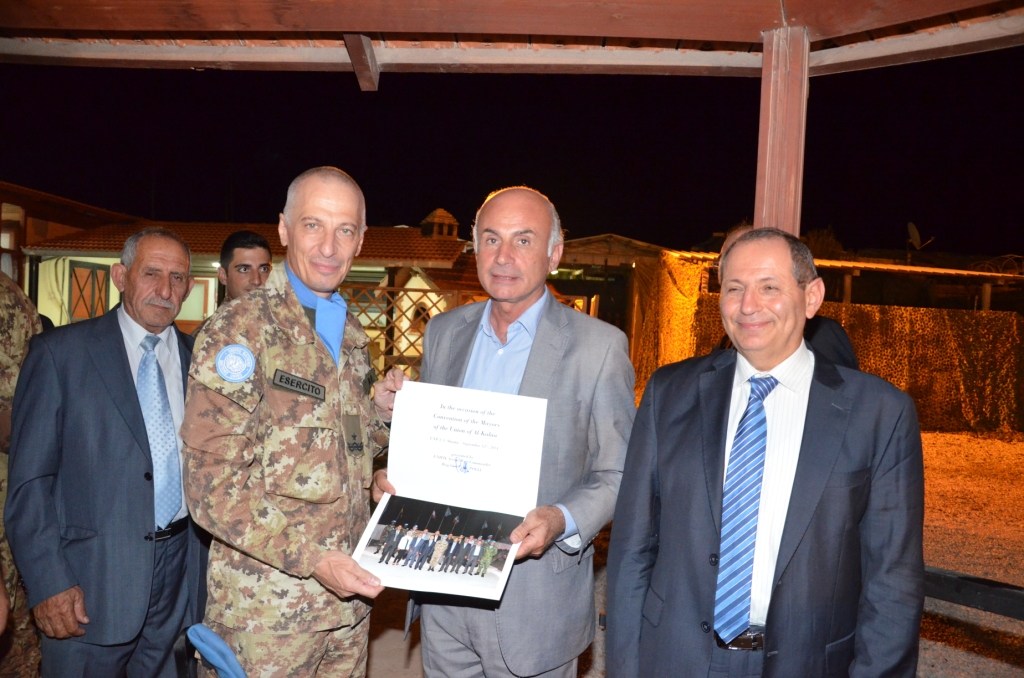 Shama (Libano), 18 settembre 2014 – Il comandante del Sector West di UNIFIL, Generale Fabio Polli, ha incontrato nei giorni scorsi, presso la base MILLEVOI di Shama, i sindaci dell’area di Tibnin, località del Libano del Sud ove opera il contingente italiano, attualmente su base Brigata Ariete.