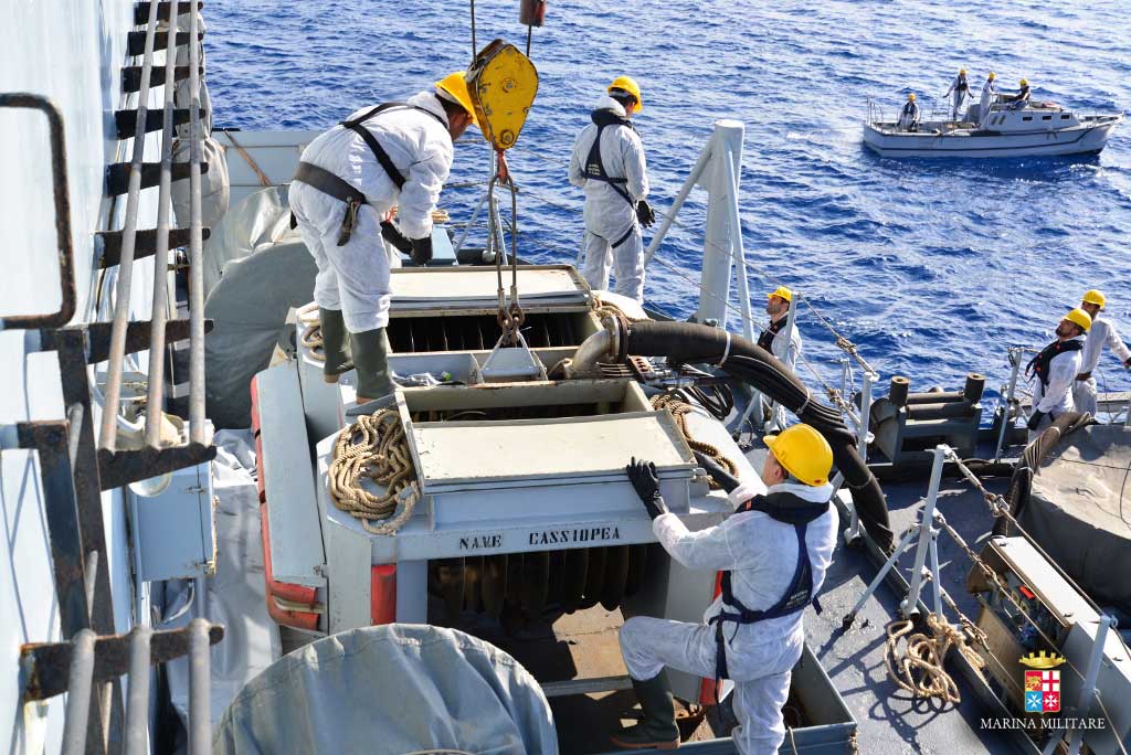 Nave Cassiopea ha effettuato, inoltre, supporto logistico ai cacciamine impegnati nel controllo degli accessi ai porti della ex-Jugoslavia durante l’operazione “Decisive Enhancement” (1996). Nell’estate del 2008 il Cassiopea ha effettuato operazioni di pattugliamento per il controllo del traffico mercantile davanti alle coste libanesi nell’ambito dell’operazione “UNIFIL”. Il pattugliatore Cassiopea è dotato di mezzi di contenimento per lo sversamento da idrocarburi  – panne pneumatiche –  recupero meccanico  – Skimmer Discoil – e stivaggio delle sostanze inquinanti  – con una capacità di 500 m3 –di aste per l’impiego di liquidi disperdenti e di un laboratorio per analisi chimico-fisiche degli inquinanti.