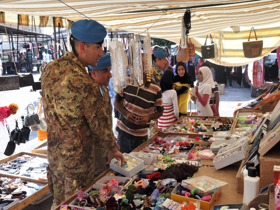 Shama (Libano), 22 settembre 2014 – I caschi blu del contingente italiano di UNIFIL, attualmente su base brigata Ariete, hanno avviato un programma di market walks, cioè pattugliamento a piedi nei luoghi di mercato, all’interno dei villaggi situati nella loro area di operazioni, nel Libano del Sud.