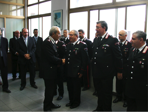 Ricevuto dal comandante provinciale, colonnello Giovanni De Chiara, ha incontrato gli ufficiali dei reparti dipendenti, i comandanti di stazione, militari dei vari gradi e ruoli, i responsabili dei reparti speciali (NAS e NIL), della Sezione di P.G. presso la locale Procura della Repubblica, delegati degli organi di rappresentanza e alcuni militari dell’arma in congedo.