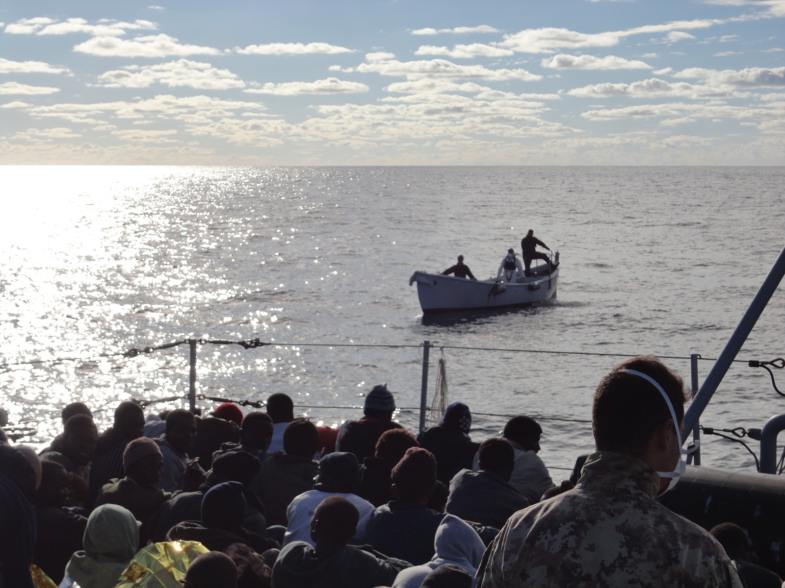 Capo Passero (SI), 22 ottobre 2014 – Nella giornata del 16 ottobre un peschereccio con 171 persone a bordo più 14 membri di equipaggio, proveniente dalle coste egiziane e diretto verso quelle italiane, è stato intercettato dalla corvetta Fenice, unità del 29° gruppo navale dell’Operazione Mare Nostrum, al largo delle coste siciliane a circa 120 miglia a sud-est di Capo Passero.