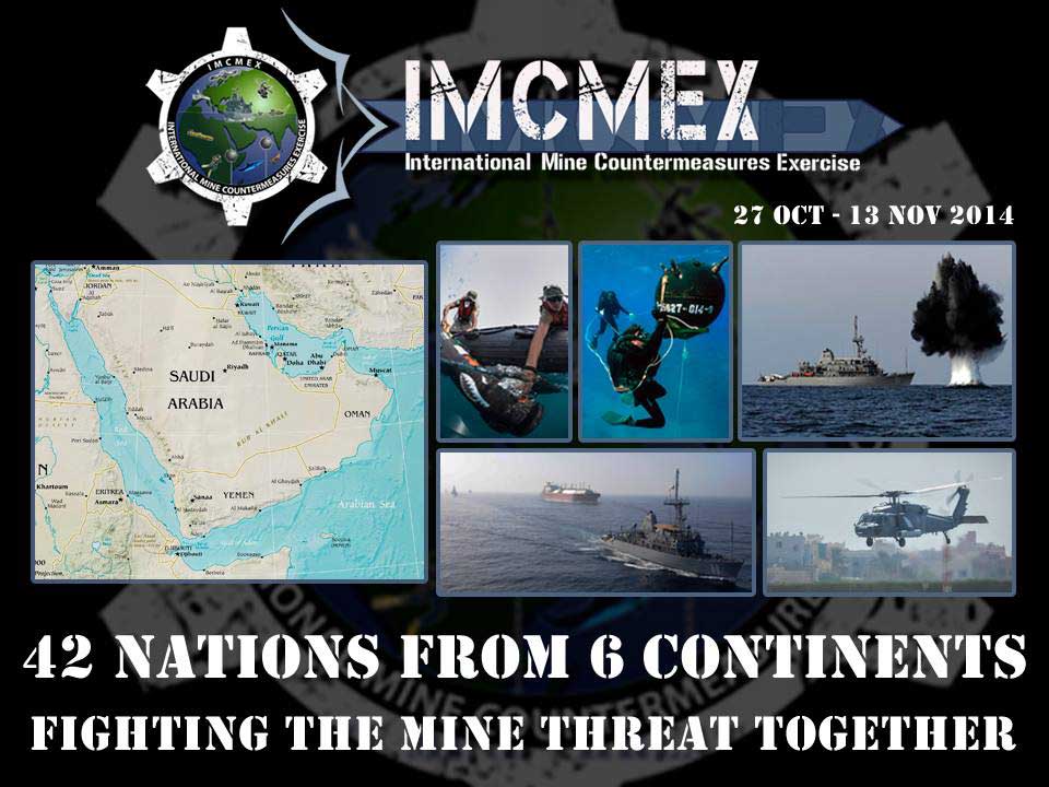 Manamah (Bahrein), 27 ottobre 2014 – Ben 42 nazioni dislocate con mezzi navali in un’area addestrativa che va dal Golfo Persico al Mar Rosso. Questo è lo scenario operativo che ha dato il via, il 21 ottobre scorso, alla più grande esercitazione di contromisure mine, la IMCMEX 14 (International Mine Counter Measure Exercise).