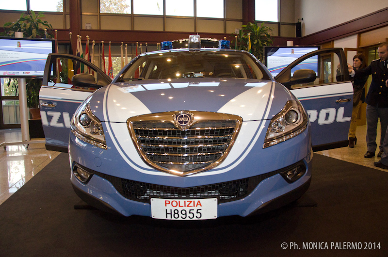 Roma, 19 novembre 2014 – Presentata oggi la nuova livrea delle macchine della polizia presso la Scuola Superiore di Polizia di Roma. Inizialmente sarà adottata su 198 vetture, che saranno destinate ai Reparti Prevenzione Crimine (R.P.C.) di Milano, Torino, Genova, Padova, Bologna, Reggio Emilia, Firenze, Pescara, Perugia, Roma, Napoli, Bari, Lecce, Potenza, Cosenza, Vibo Valentia, Siderno, Palermo, Catania, Abbasanta. L’auto in esposizione era una Lancia, ma la livrea verrà adottata anche su altre carrozzerie.