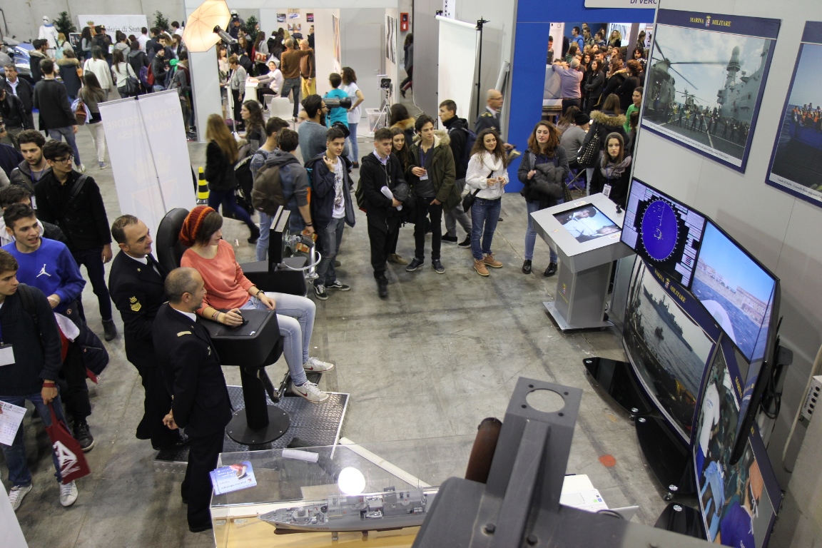 Presso lo stand interattivo i militari rappresentanti delle quattro Forze Armate illustrano agli studenti, ai loro familiari e ai docenti le diverse realtà di impiego offerte dal mondo militare, raccontando le proprie esperienze professionali e umane con l’ausilio  di internet (con il sito web www.difesa.it) e dei social network (YouTube, Twitter, Facebook).