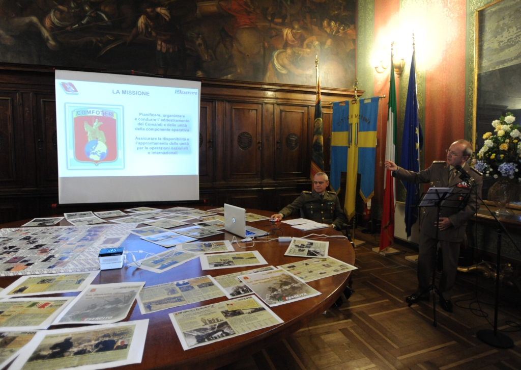 Verona, 14 dicembre 2014 – Si è tenuta nei giorni scorsi a Verona nella Sala degli Arazzi del Comune, la conferenza di presentazione del CalendEsercito 2015, incontro organizzato in municipio dal Comando delle Forze Operative Terrestri (COMFOTER) di concerto con l’Amministrazione comunale di Verona.