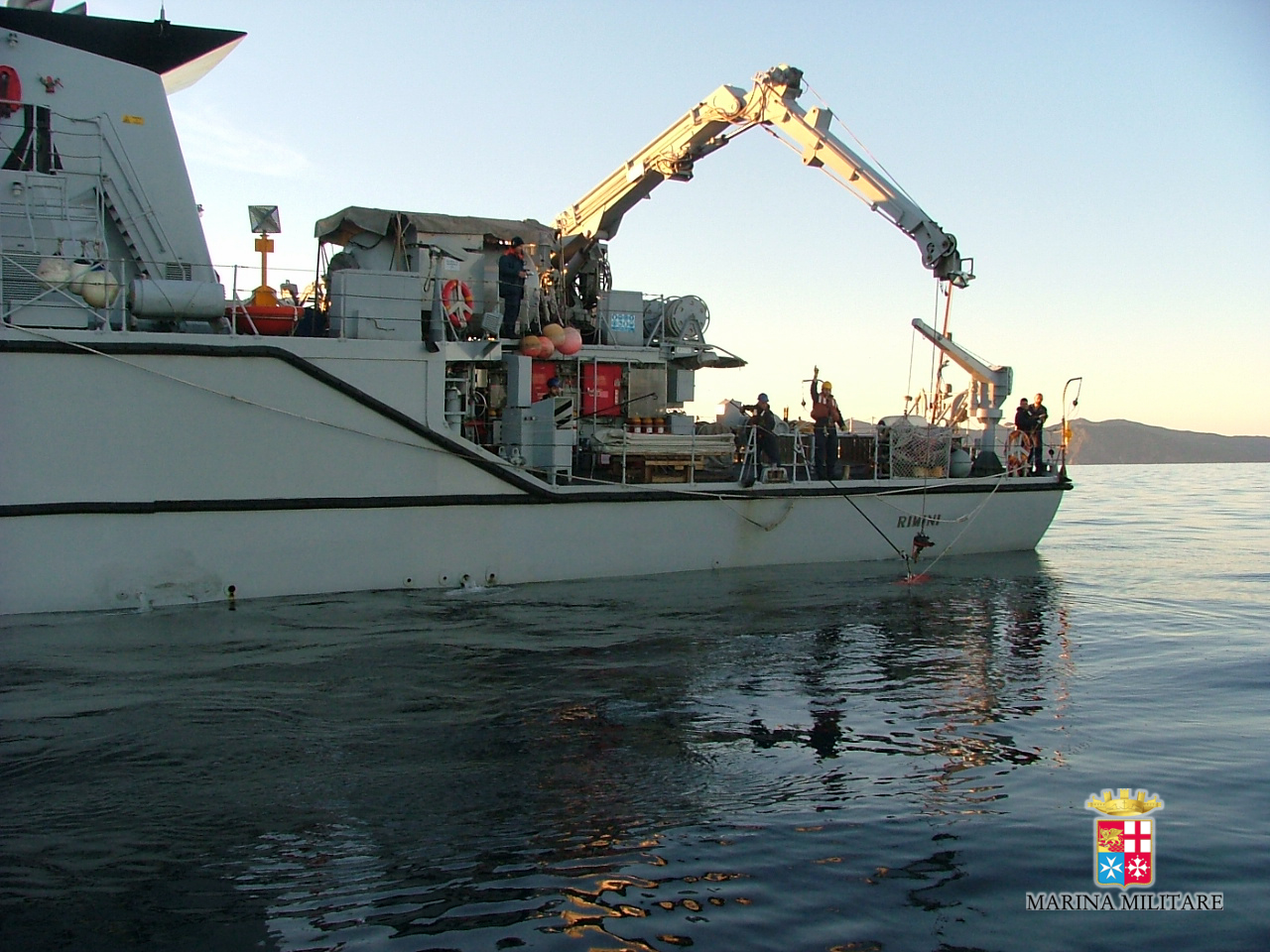 Il cacciamine Rimini ha condotto, nei giorni 10 e 11 dicembre, indagini ambientali in alcuni punti individuati dall’università di Siena (dipartimento di scienze fisiche, della terra e dell’ambiente) situati nei pressi dell’isola di Capraia e di fronte alla foce del fiume Tevere.