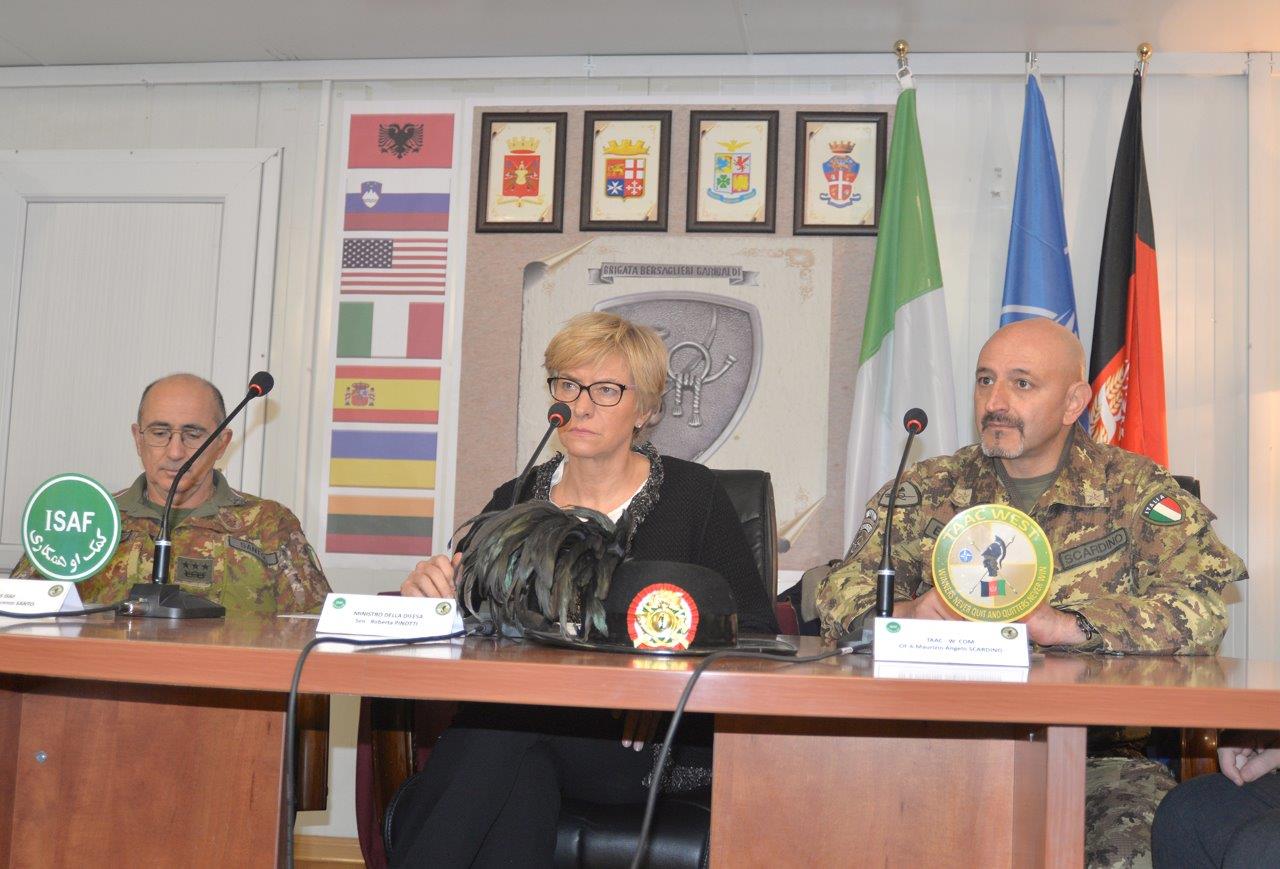 La giornata tra i militari italiani in Afghanistan è proseguita ad Herat, dove ha sede il Train Advise Assist Command West, su base brigata bersaglieri Garibaldi, nel quale opera gran parte del personale delle Forze Armate italiane schierato nel paese. Al suo arrivo, il ministro è stato accolto dal comandante, generale di brigata Maurizio Angelo Scardino con il quale, insieme al generale di corpo d’armata Vincenzo Santo, giunto anch’egli da Kabul, e ad una rappresentanza di militari appartenenti a tutte le forze armate, ha preso parte alla video conferenza organizzata in occasione dello scambio di auguri tra il Presidente della Repubblica ed il personale impiegato in tutte le operazioni all’estero.