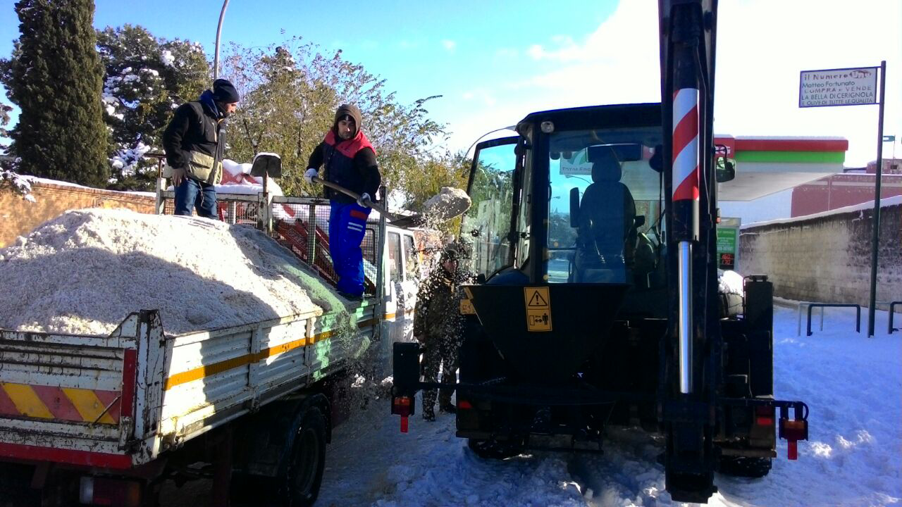 L’esercito è stato impegnato con macchine di movimento terra nelle strade di Cerignola per liberare le strade dalla neve, contribuendo in coordinamento con le altre forze dislocate sul territorio e volontari, nello spargimento del sale.