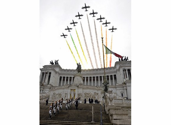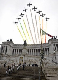 Roma, 4 febbraio 2015 – Ieri le Frecce Tricolori hanno effettuato il sorvolo sull’Altare della Patria in occasione della tradizionale deposizione della corona d’alloro del neo Presidente della Repubblica stendendo, sulle note del silenzio, il lungo tricolore di fumi sul cielo di Roma.