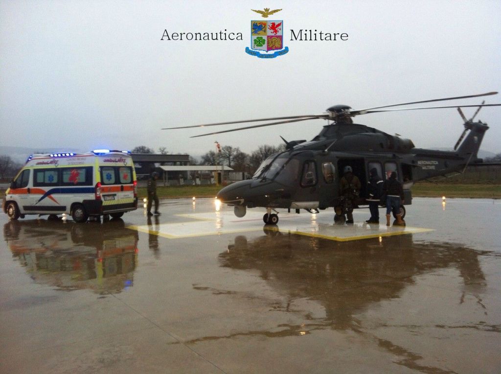 La ragazza, 18 anni, originaria di Terni, era stata prelevata intorno alle ore 16.00 dall’avio-superficie della cittadina umbra con un elicottero HH-139 decollato poco prima dall’85° Centro SAR (Searchand Rescue -Ricerca e Soccorso) di Pratica di Mare. A causa delle proibitive condizioni metereologiche in atto sulla dorsale appenninica, si è resa necessaria una staffetta con un altro dei velivoli dell’Aeronautica Militare in prontezza per trasporti sanitari di urgenza, in questo caso un Falcon 50 del 31° stormo di Ciampino.