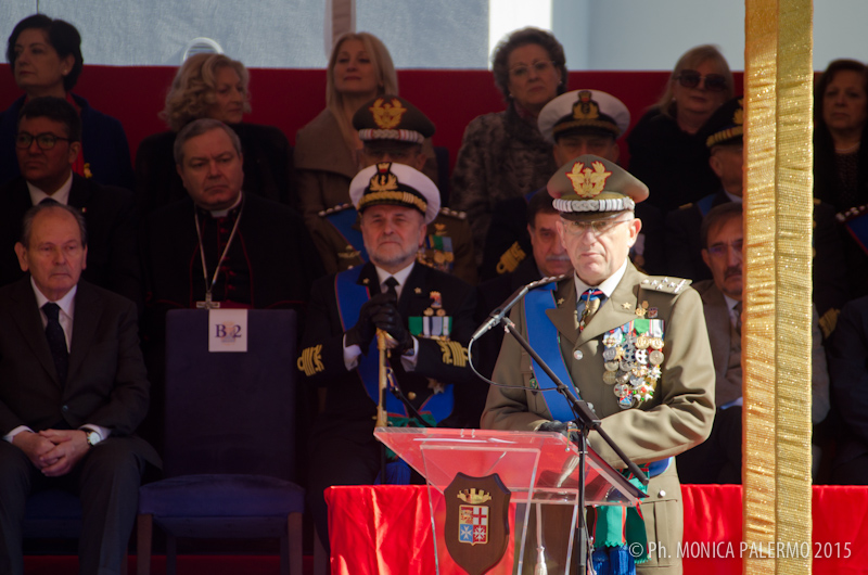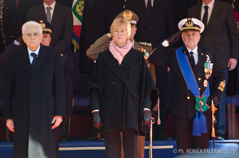 È poi arrivato il presidente della repubblica Sergio Mattarella, accompagnato dal ministro della difesa Roberta Pinotti, e il comandante uscente, l’ammiraglio Luigi Binelli Mantelli e il comandante subentrante, il generale Claudio Graziano. A turno sono intervenuti con un discorso.
