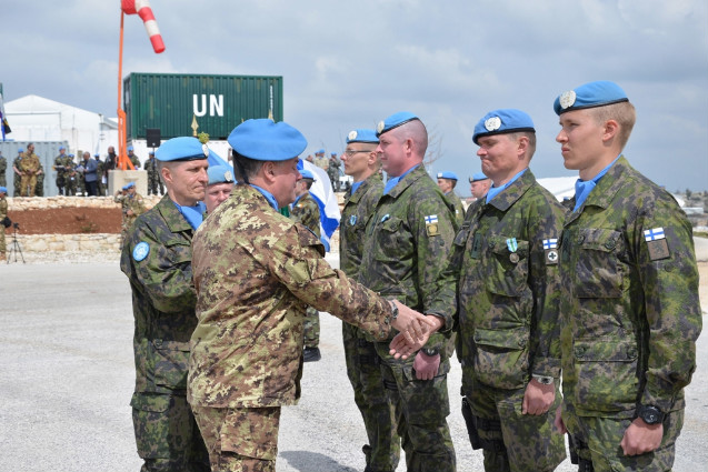 Il generale Del Col consegna la medaglia commemorativa della missione ONU ai contingenti finlandesi e irlandesi