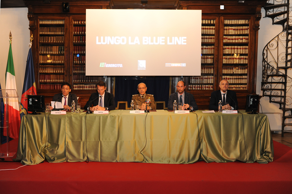 Roma, 23 aprile 2015 – Questa mattina nella Biblioteca Militare Centrale di Palazzo Esercito si è svolta la conferenza stampa di presentazione del docu-film Lungo la Blue Line alla quale hanno partecipato il sottosegretario di stato alla Difesa, on. Gioacchino Alfano, il capo di Stato Maggiore dell’Esercito, generale di corpo d’armata Danilo Errico, il dott. Andrea Zappia, amministratore delegato di SKY Italia e il produttore, dott. Michele Bongiorno