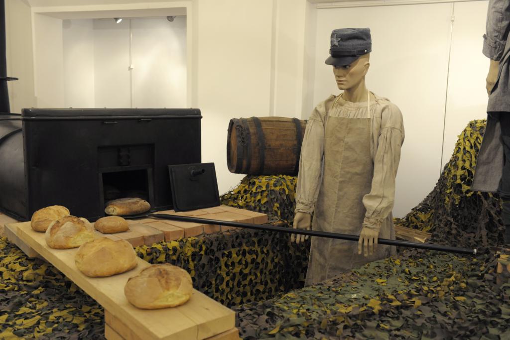 Sono in mostra cimeli e fotografie, cartoline e menù, tutti relativi al rancio durante la Grande Guerra. Sono raffigurate scenografie tipiche e pannelli didattici sul servizio di vettovagliamento dell’epoca.