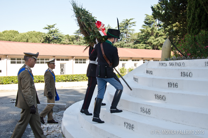 Alle 8,00 di mattina i due generali e i militari della caserma hanno partecipato alla Santa Messa celebrata dal cappellano militare padre Pier Luca Bancale, con la banda della musica d’ordinanza della Granatieri. Al termine della messa una corona d’alloro, sorretta da un granatiere e da un lanciere di Montebello, è stata deposta sul monumento ai caduti, alla presenza del picchetto, della banda e delle autorità militari.