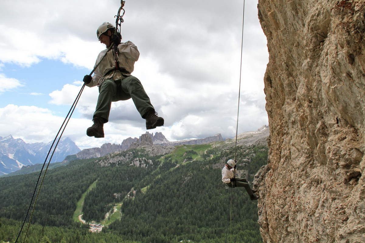 Le cime scelte quest’anno sono quelle delle 5 Torri, che verranno risalite lungo le diverse vie da cordate di alpini e di soldati di eserciti stranieri (tedeschi, inglesi e svizzeri solo per citarne alcuni), dando vita ad una dimostrazione senza soluzione di continuità delle più moderne tecniche di progressione alpinistiche e di soccorso di infortunati in parete.