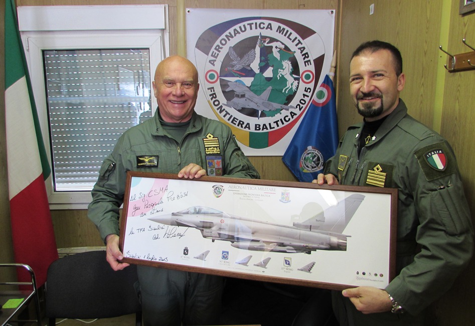 Il generale di squadra aerea Pasquale Preziosa ed il comandante della squadra aerea, generale Maurizio Lodovisi, hanno incontrato il rischieramento italiano per la difesa aerea nei paesi baltici.
