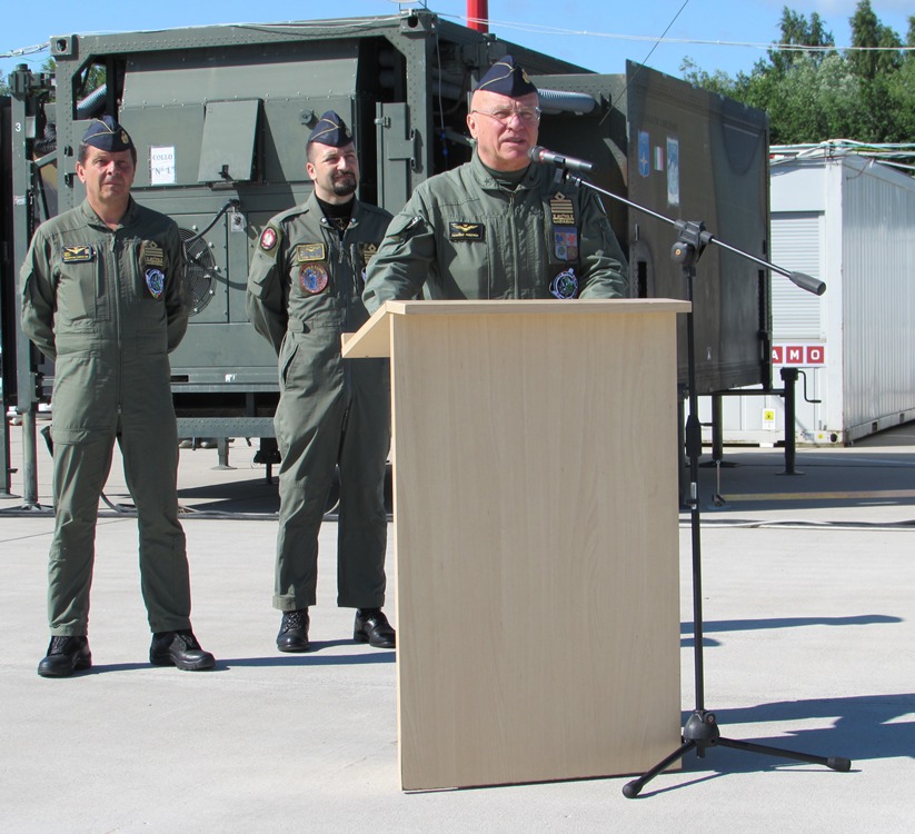 Al termine della cerimonia dell’alza bandiera il Generale Preziosa alla presenza di tutto lo schieramento Italiano, ha rivolto un sentito ringraziamento per l’operato degli uomini e delle donne in azzurro che con etica, passione, competenza e disciplina operano senza soluzione di continuità ottenendo risultati sempre eccellenti riconosciuti sia in Italia sia dalla NATO: “sino ad oggi avete dimostrato di avere le capacità, la professionalità e l’addestramento sia in volo sia a terra tali da operare con risultati eccellenti ed essere da esempio e modello per molte altre forze armate all’estero. Le qualità mostrate e possedute dimostrano il concetto di Air Superiority che l’Aeronautica sta continuando ad esportare in molti paesi”. Il Capo di SMA ha infine invitato tutti gli uomini e le donne in azzurro a “mantenere la rotta e conquistare il futuro, poiché ad agosto tornerete in Patria ma dovrete essere pronti a ripartire per garantire la sicurezza ovunque ci sia bisogno. Questa è l’Aeronautica Militare. Viva l’Aeronautica, viva l’Italia”.