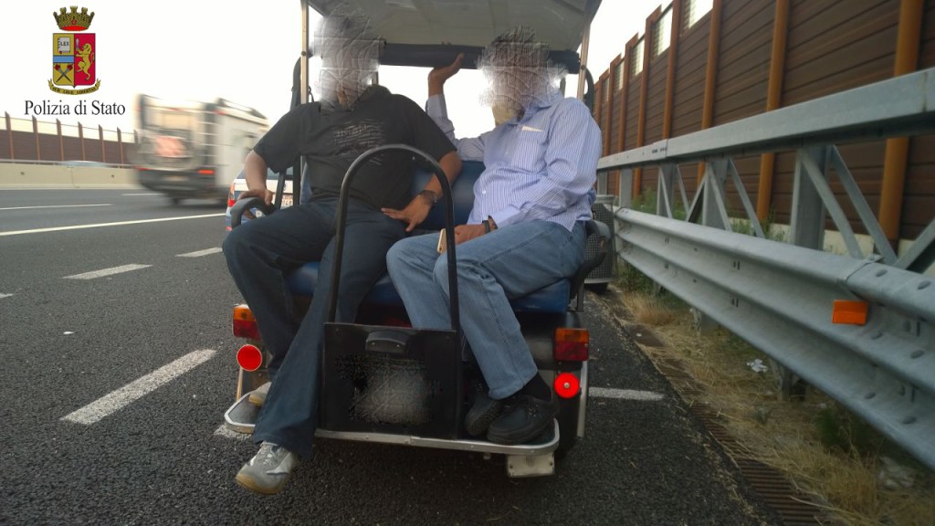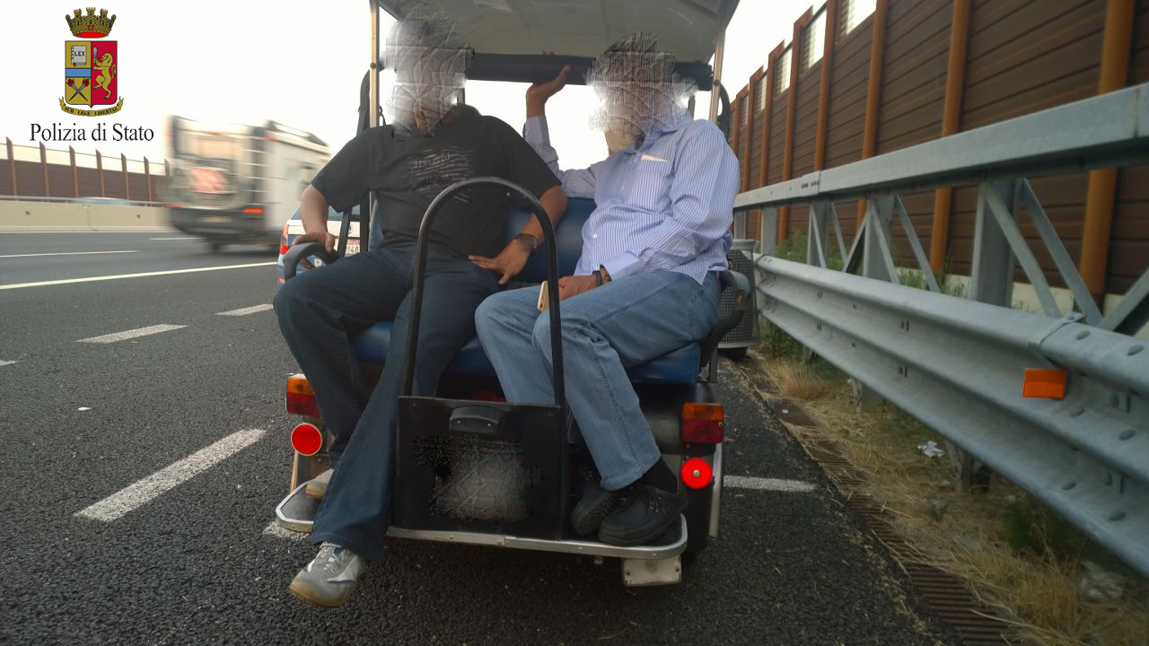 Rimini, 8 agosto 2015 – La Polizia Stradale di Rimini, durante i servizi di prevenzione e repressione dei reati in ambito autostradale, ha intercettato un veicolo alquanto atipico, ovvero una Golf Car, mini veicolo che si usa per gli spostamenti all’interno dei campi di golf, che circolava sull’autostrada A/14 nel tratto compreso tra il casello di Rimini sud ed il casello di Riccione in direzione sud.