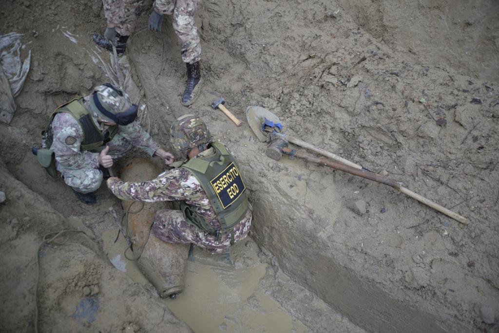 Gli specialisti dell’Esercito, per rimuovere e distruggere la spoletta dalla bomba, hanno impiegato 20 minuti