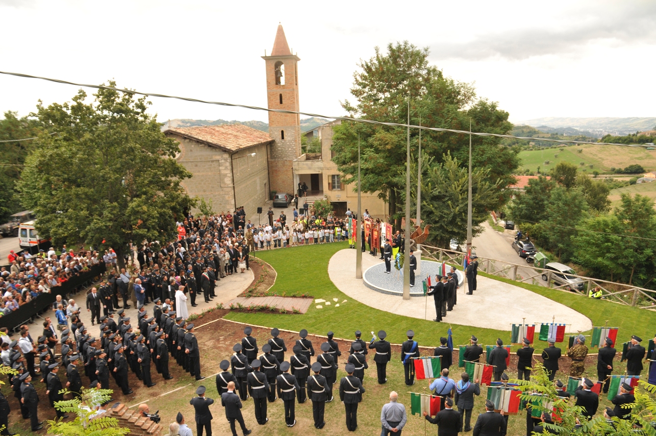 L’inaugurazione del monumento è stata preceduta da una funziona religiosa riservata ai familiari ed ai colleghi del 6° Stormo, celebrata da mons. Giovanni D’Ercole, Vescovo di Ascoli Piceno presso la chiesa SS. Quirico e Giulitta di Gimigliano. A seguire, è stata deposta una corona e scoperta una targa commemorativa riportante i nomi dei colleghi scomparsi, presso il monumento ai caduti di Venarotta, riqualificato per l’occasione con il contributo dell’A.A.A.
