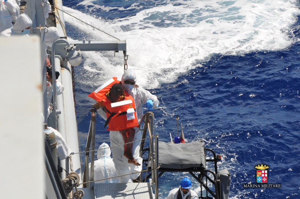 Tutti i migranti questa mattina sono stati trasferiti sulla nave Mohorovicic impegnata nell’operazione Triton di Frontex per il trasferimento verso un porto italiano.