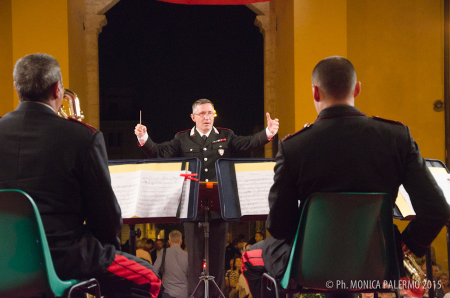 Roma, 16 settembre 2015 – Inaugurata ieri 2° edizione della rassegna Luci della Storia su Porta Pia con un ensemble di 12 sassofoni della banda dei Carabinieri, diretti dal Maestro tenente colonnello Massimo Martinelli. I dodici sassofonisti, con l’aggiunta di un batterista, hanno suonato musiche di Gabrieli, Johann Sebastian Bach, Gershwin e altri, concedendo al numeroso pubblico ben due bis prima di concludere la serata con le note della Marcia di Ordinanza dell’Arma, La fidelissima e il Canto degli Italiani.