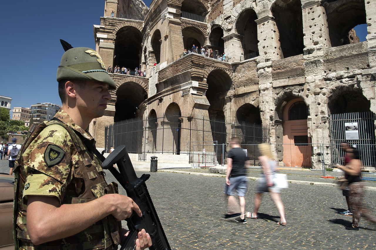 Roma, 18 settembre 2015 – Roma, presso l’Arco di Costantino in zona Colosseo, una pattuglia di militari del Raggruppamento Lazio – Umbria – Abruzzo, a guida brigata meccanizzata Granatieri di Sardegna ed effettiva al 7° reggimento alpini Feltre, impegnata nell’operazione Strade Sicure, si è resa protagonista di un’attività di controllo che ha portato al fermo di diversi individui.