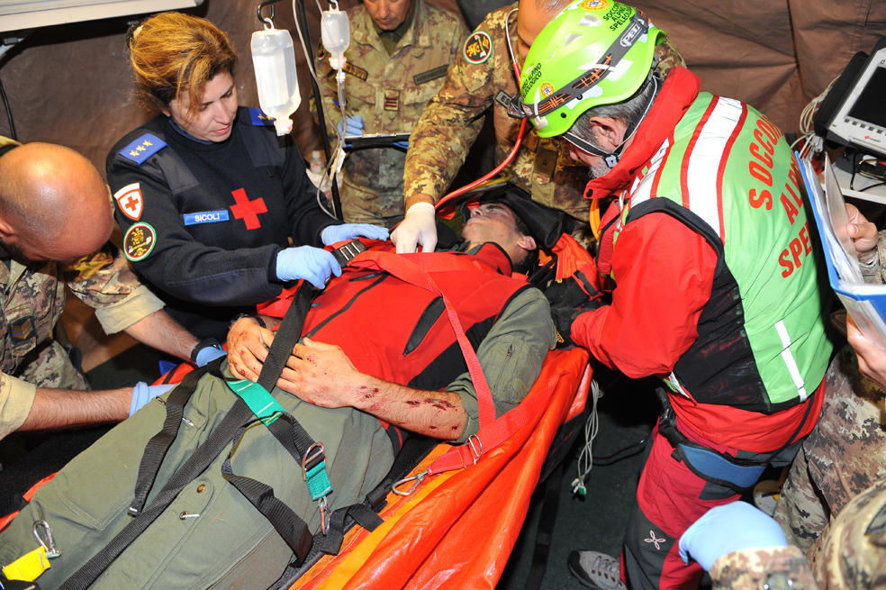 Presso il PBA, sono stati attivati un Posto Medico Avanzato (PMA) multi-agenzia, in cui ha operato personale sanitario del 3° Stormo A.M. di Villafranca, del Corpo Ausiliario delle Infermiere Volontarie della Croce Rossa Italiana e del Servizio Urgenza e Emergenza Medica 118 di Cosenza personale sanitario del CNSAS e del Sovrano Militare Ordine di Malta con funzioni sia di postazione medica avanzata nell’ambito dello scenario esercitativo, sia di presidio di primo soccorso in caso di reali esigenze per il personale partecipante. Le squadre sanitarie partecipanti hanno avuto l’opportunità di addestrarsi grazie a delle innovative simulazioni ad alta fedeltà previste dal momento del ritrovamento del “ferito” al suo ricovero. Nel corso dell’esercitazione sono stati gestiti 18 codici rossi, cinque codici gialli e un codice verde.