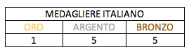Il medagliere italiano raggiunge quota undici: un oro, cinque argenti e cinque bronzi.