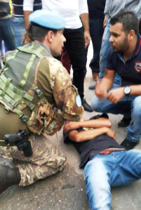 Una pattuglia della Task Force Italbatt soccorre un ragazzo coinvolto in incidente stradale riverso a terra nei pressi del villaggio di Al m’ashuq.