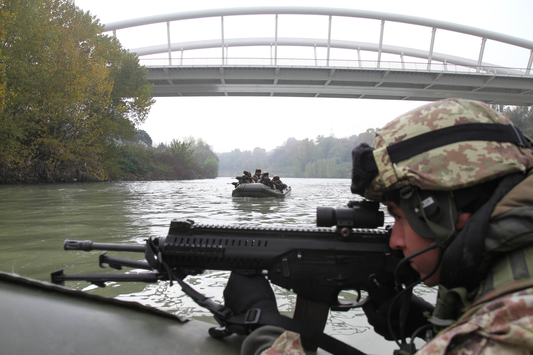- l’individuazione e il fermo di sospetti sulla sponda del Tevere che si liberano di un borsone gettandolo nel fiume, al passaggio di una pattuglia fluviale congiunta Carabinieri/Esercito.