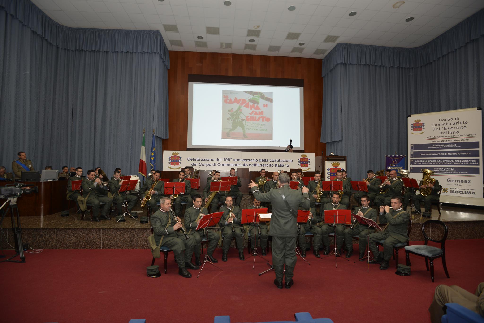Roma, 26 novembre 2015 – Il Corpo di Commissariato dell’Esercito Italiano festeggia il 199° anniversario della sua costituzione con un evento celebrativo in programma presso la la Scuola Trasporti e Materiali di Roma alla Cecchignola. La cerimonia si è aperta con un video messaggio del capo di Stato Maggiore dell’Esercito, gen. c.a. Danilo Errico, che ha ricordato come i membri del Corpo, uomini e donne, hanno saputo dar vita ad una solida tradizione in fraterna comunione di spirito con i colleghi delle armi combattenti lasciandoci in eredità un fulgido esempio di dedizione e di leale attaccamento alla nazione, testimoniato dalle medaglie che fregiano la Bandiera del Corpo nonché dalle numerose medaglie concesse individualmente.