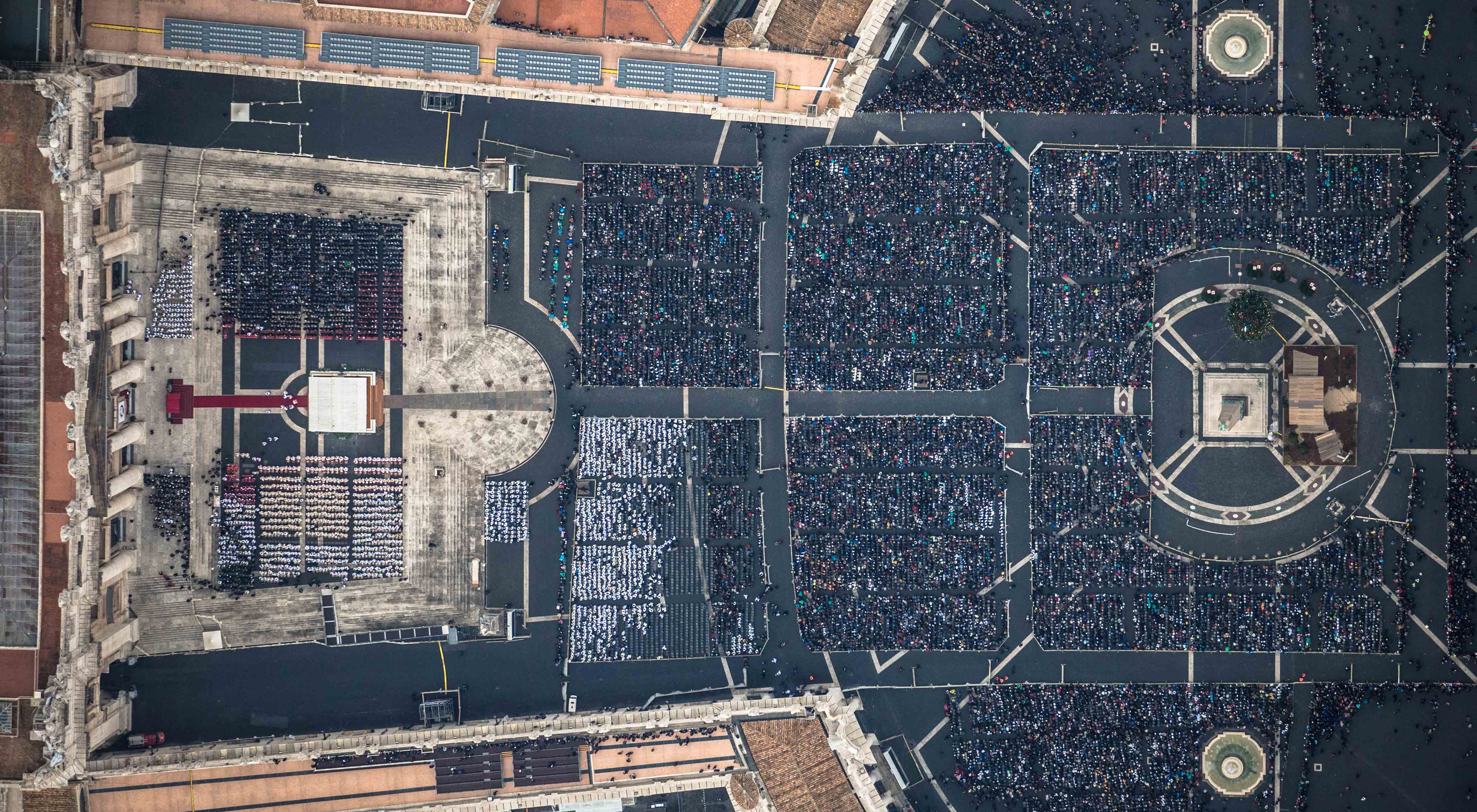 Città del Vaticano  – Da un elicottero della Polizia di Stato veduta aerea di San Pietro con i fedeli arrivati per l’inaugurazione del Giubileo in occasione dell’apertura della Porta Santa 2015 12 08 © Massimo Sestini per la Polizia di Stato. Vatican City – From a Polizia di Stato helicopter an aerial view of Saint Peter’s with the faithful arriving for the inauguration of the Jubilee on the occasion of the opening of the Holy Door 2015 12 08 © Massimo Sestini for the Polizia di Stato.