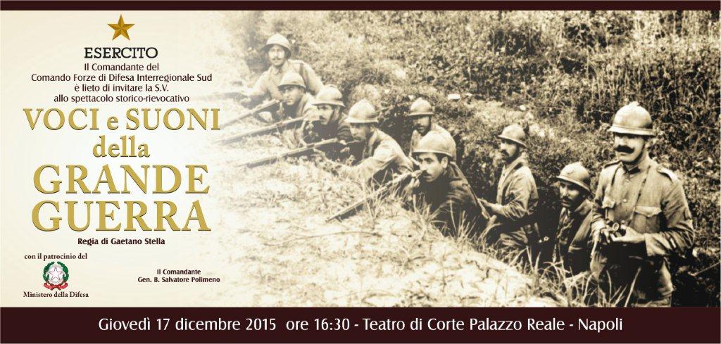 “Voci e Suoni della Grande Guerra” è uno spettacolo storico rievocativo per immagini, musica e voci, scritto e diretto da Gaetano Stella con un’attenzione particolare alla Storia ed alle storie che hanno accompagnato quell’evento nel territorio campano e nell’intera Penisola.